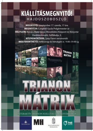 A Kulturális és Innovációs Minisztérium Petőfi Programja keretében, a Magyar Házak Nonprofit Kft. öt, a Nemzeti Művelődési Intézet által kijelölt, Hajdú-Bihar Vármegyei településen szervezett vándorkiállításon mutatja be a Trianon Mátrix interaktív kiállítását.