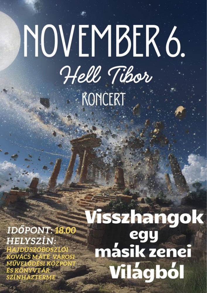 Hell Tibor orgonista-zeneszerző „Visszhangok egy másik zenei világból” című koncertjén a klasszikus elektronikus rock műfaj különleges atmoszféráját idézi meg. Zenéjét olyan nevek inspirálták, mint Vangelis, Tangerine Dream vagy Klaus Schulze, mégis sajátos hangzásvilágot teremtett, amelyben a dallamok időn és téren átívelve szólalnak meg.